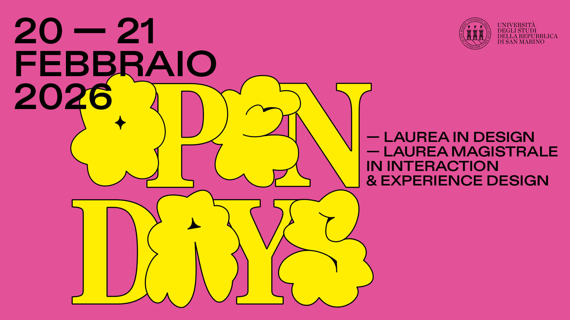 Studiare a San Marino significa far parte di una comunità che vive, condivide, progetta, e impara dagli altri. Studiare design nella più antica Repubblica al mondo è un’esperienza unica: una formazione ibrida tra prodotto e comunicazione che si completa nella sperimentazione dei nuovi linguaggi dell’interaction e dell’experience design. Lo studente acquisisce conoscenze e competenze per affrontare con successo le sfide del mondo del lavoro e degli studi avanzati.