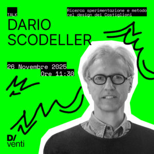 Durante il talk, Scodeller approfondirà gli artifici espositivi e gli oggetti di relazione ideati dai Castiglioni, il loro ruolo nel panorama progettuale del Novecento oltre alle ricerche svolte per la mostra del 2019 alla Galleria Harry Bertoja di Pordenone.