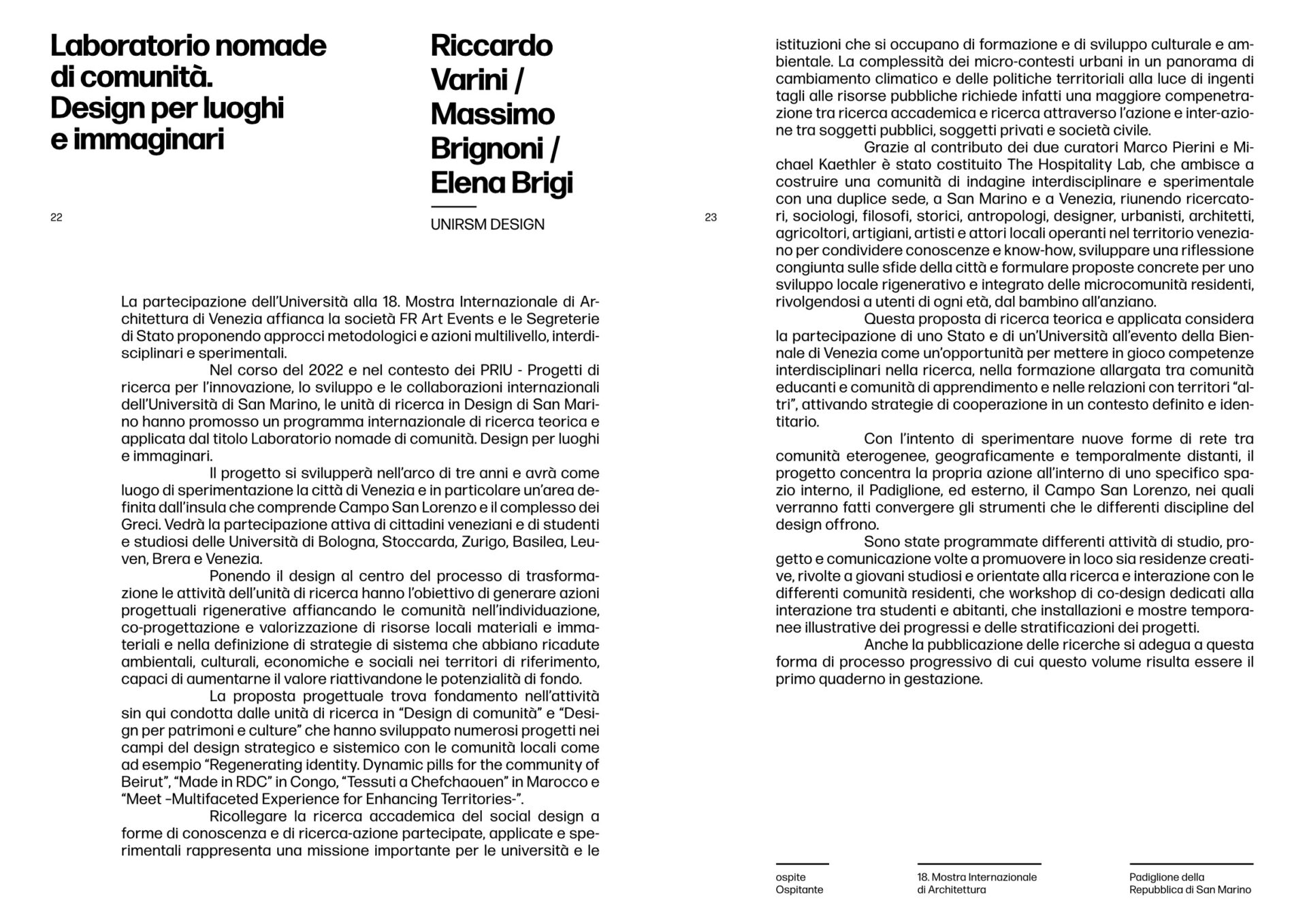 Vittorio Corsini con il progetto Coniugato al presente e The Hospitality Lab con il progetto Ecologia dell’altro.