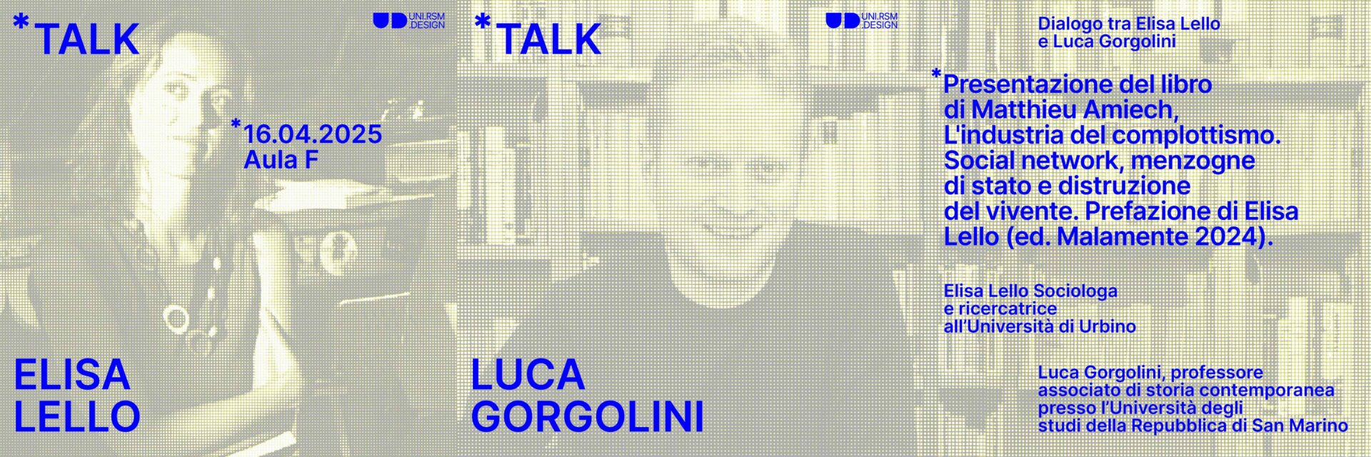 Il 16 aprile UNIRSM Design ospiterà Elisa Lello e Luca Gorgolini per un dialogo su tematiche di estrema attualità, in Aula F alle ore 10.00!