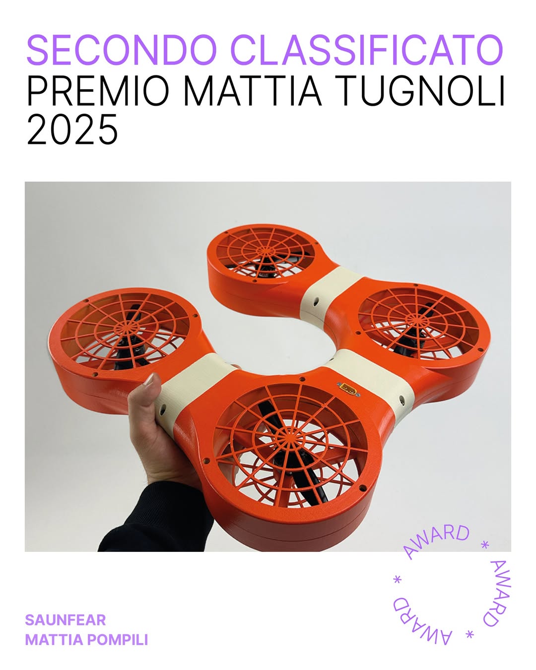 Per aver avuto la visione di integrare drone e salvagente ed equipaggiarlo con un sistema di volo e riconoscimento dell’emergenza in autonomia, a supporto del servizio di salvataggio dell’operatore.