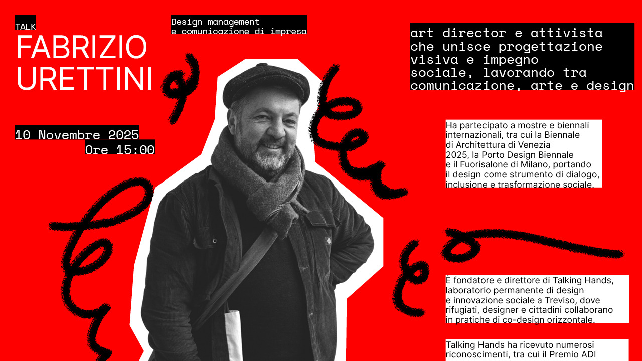 10 novembre, ore 15:00 - Aula Z1 e Z2 - L’evento si inserisce all’interno del corso di Design Management e Comunicazione d’Impresa, ma è aperto a tuttə!