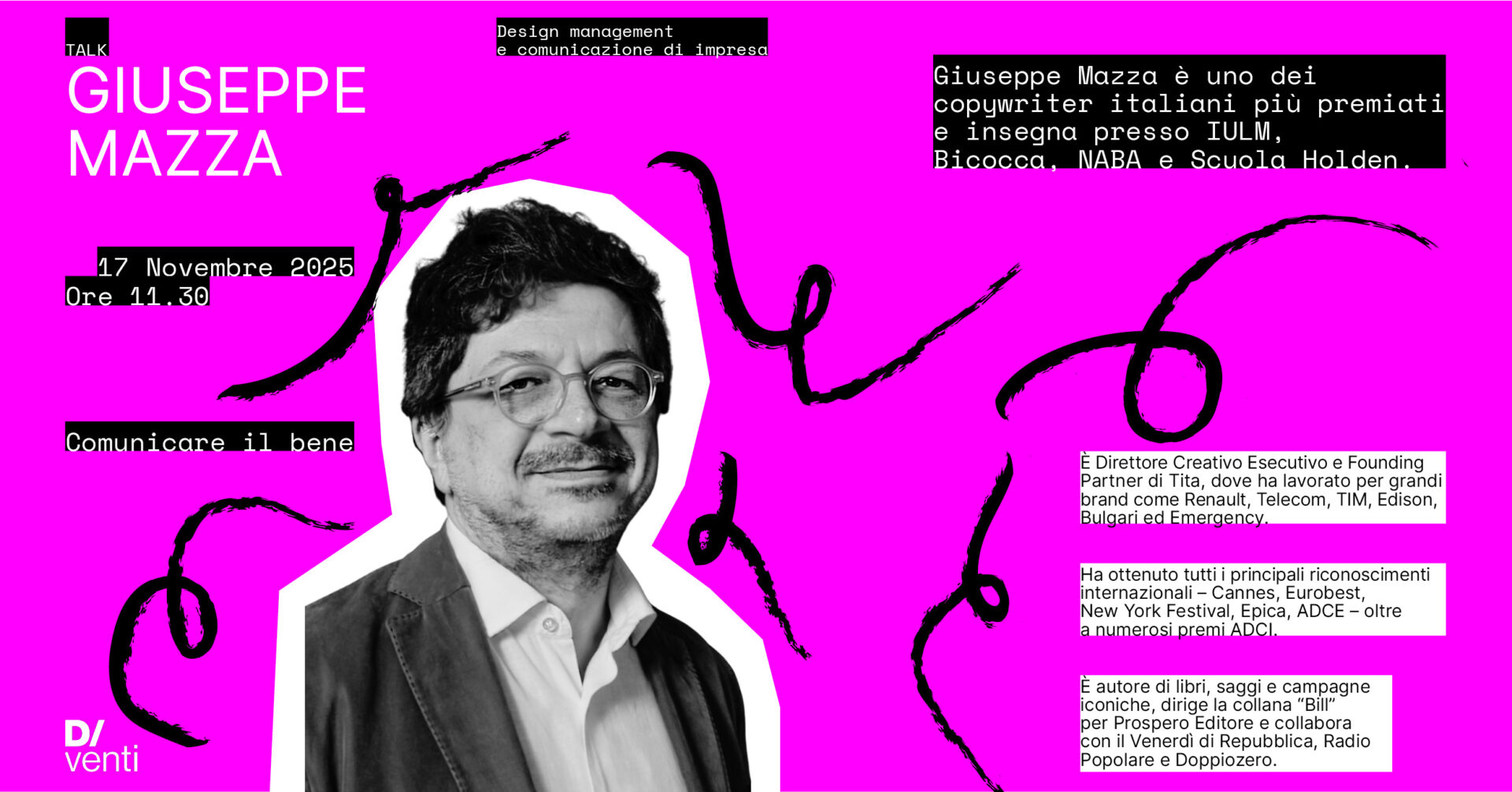 18 novembre, ore 11:30 - Aula Z - L’evento si inserisce all’interno del corso di Design Management e Comunicazione d’Impresa, ma è aperto a tuttə!