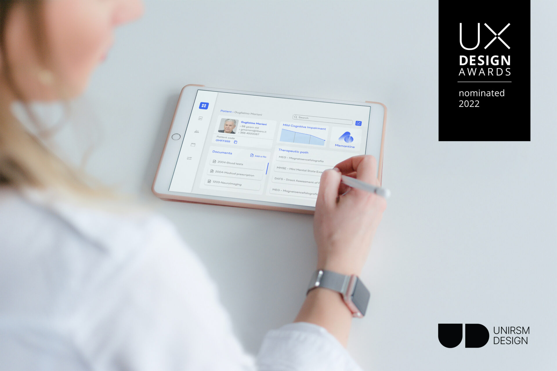“Sinapsi - Smart tools for diagnosing dementia” progetto di tesi del nostro laureato Daniele Trebbi è stato nominato per il premio UX Design Awards organizzato dall’ IDZ | Internationales Design Zentrum Berlin.