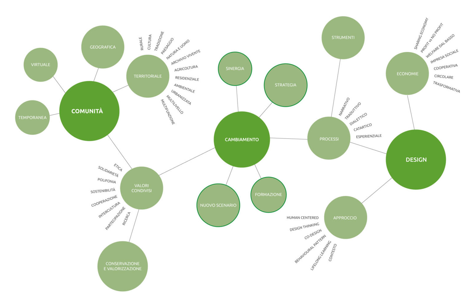 Design di Comunità è dunque riflettere su responsabilità e strategie, nell’immaginare nuove azione progettuali di sistema che abbiano ricadute culturali, economiche e sociali nei contesti in cui agiscono. Un lavoro di connessione concettuale e di cucitura che attraversa con coraggio ambiti considerati distanti, percepiti come diversi e divisi. Un lavoro di collegamento continuo tra piccolo e grande, tra dentro e fuori, tra locale e globale, tra materiale e immateriale.