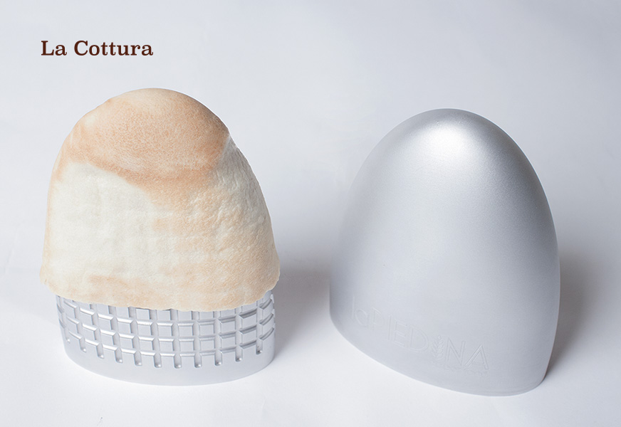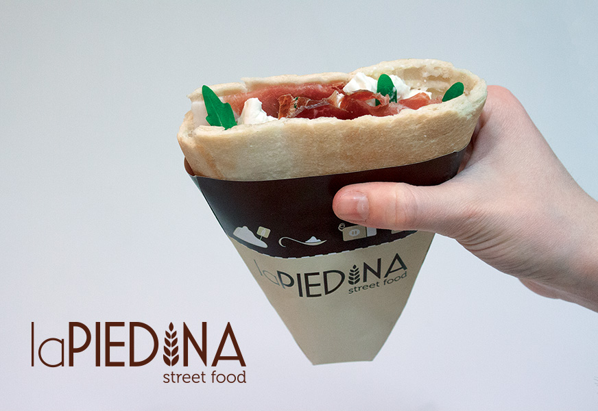 “La Piedina” indaga l’obbiettivo dello street food nell’ottica della salvaguardia dei prodotti tradizionali italiani soggetti a trasformazione culinaria per la realizzazione di “ricette di strada” e/o ricette di cucina italiana promuovendone l’assunzione a ruolo di beni culturali. “La Piedina” favorisce e al tempo stesso ottimizza la produzione artigianale della Piadina Romagnola resa funzionale sia per chi passeggia per strada, sia per chi necessita di un pranzo “al volo” rapido e disimpegnato. Cuocendo l’impasto tra due stampi di forma conica in alluminio, uno maschio e uno femmina, il prodotto, rivisitato ma non stravolto, riesce a interpretare in modo contemporaneo e in forma più confortevole la “generosa, accogliente, aperta, semplice, tradizionale” piadina.