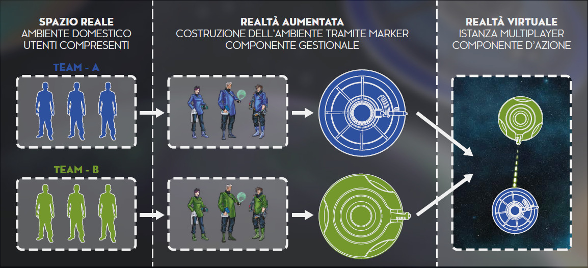 Il progetto, quindi, è un gioco immersivo e adattivo che crea relazioni indirette tra i giocatori. L’obiettivo è far vivere agli utenti un’esperienza di gioco in cui ambientazione e dinamiche siano in grado di creare un ingaggio unico per il giocatore. L’immersività è di tipo psico-motorio, portando quindi gli utenti a muoversi nello spazio e ad interagire grazie all’implemetazione di tecnologie come la realtà aumentata.