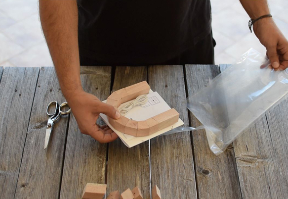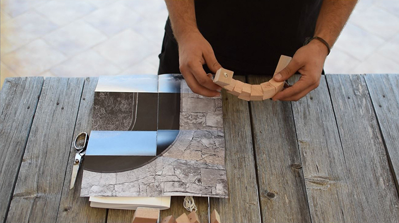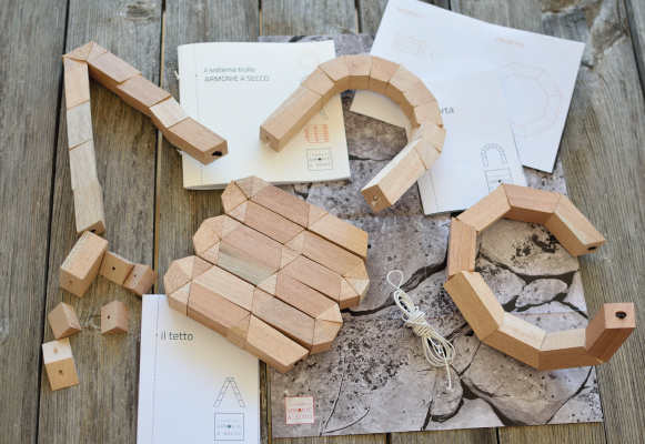 L’idea è quella di creare degli oggetti che comunicano i principi geometrici fondamentali dell’architettura del trullo. Gli oggetti devono generare delle altre forme; attraverso il movimento di moduli disposti in sovrapposizione secondo una rotazione che genera una serie di incastri e procede con equilibri di spinte.