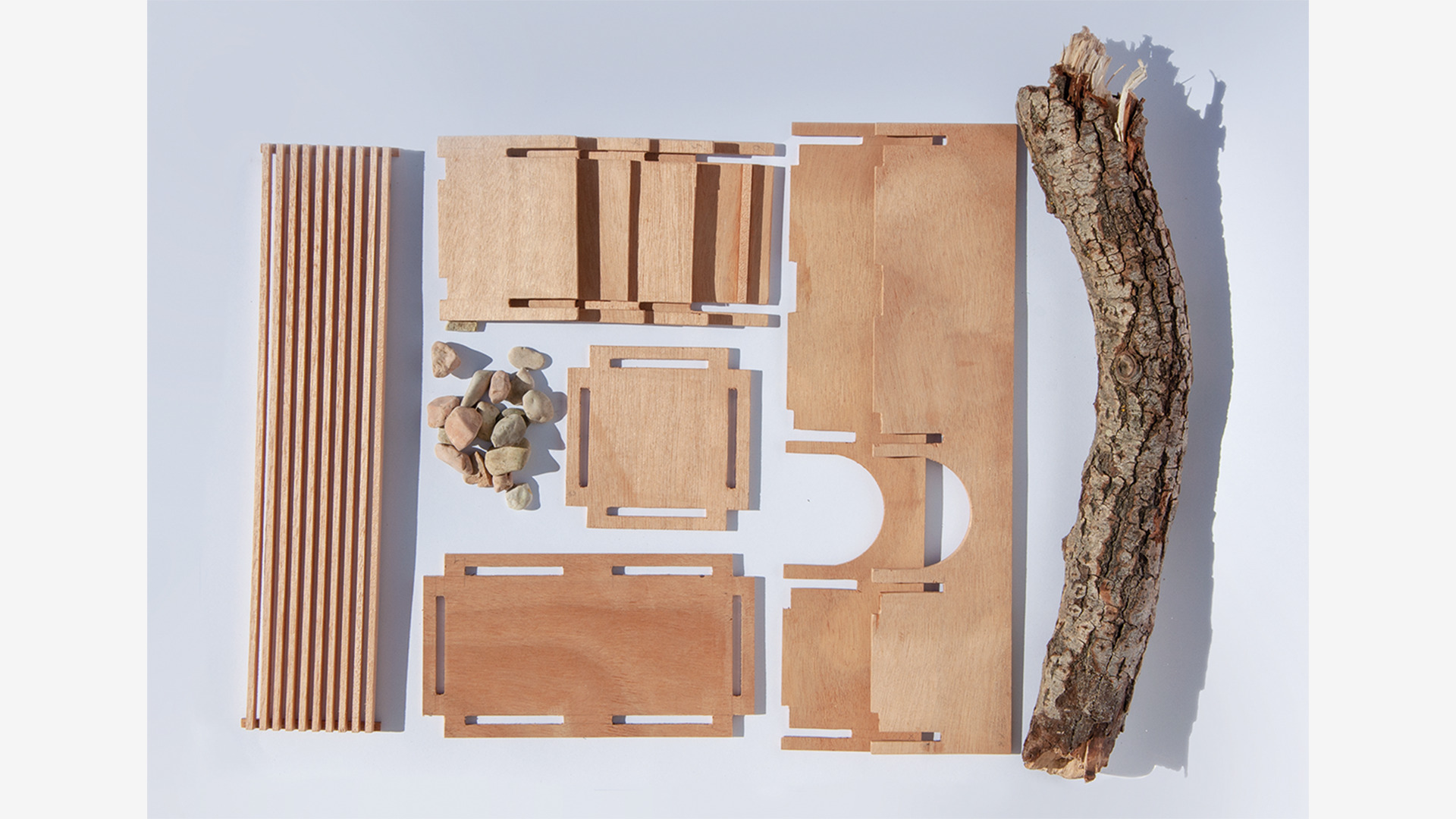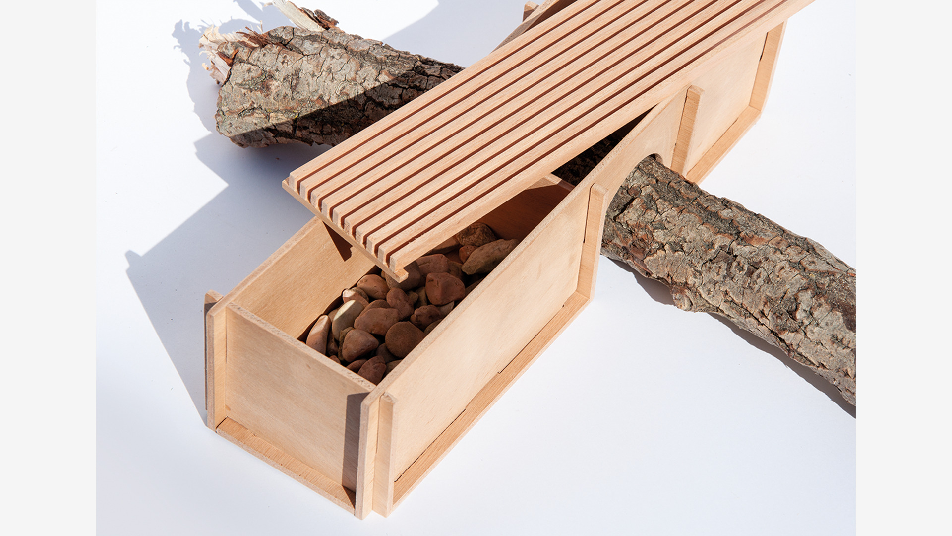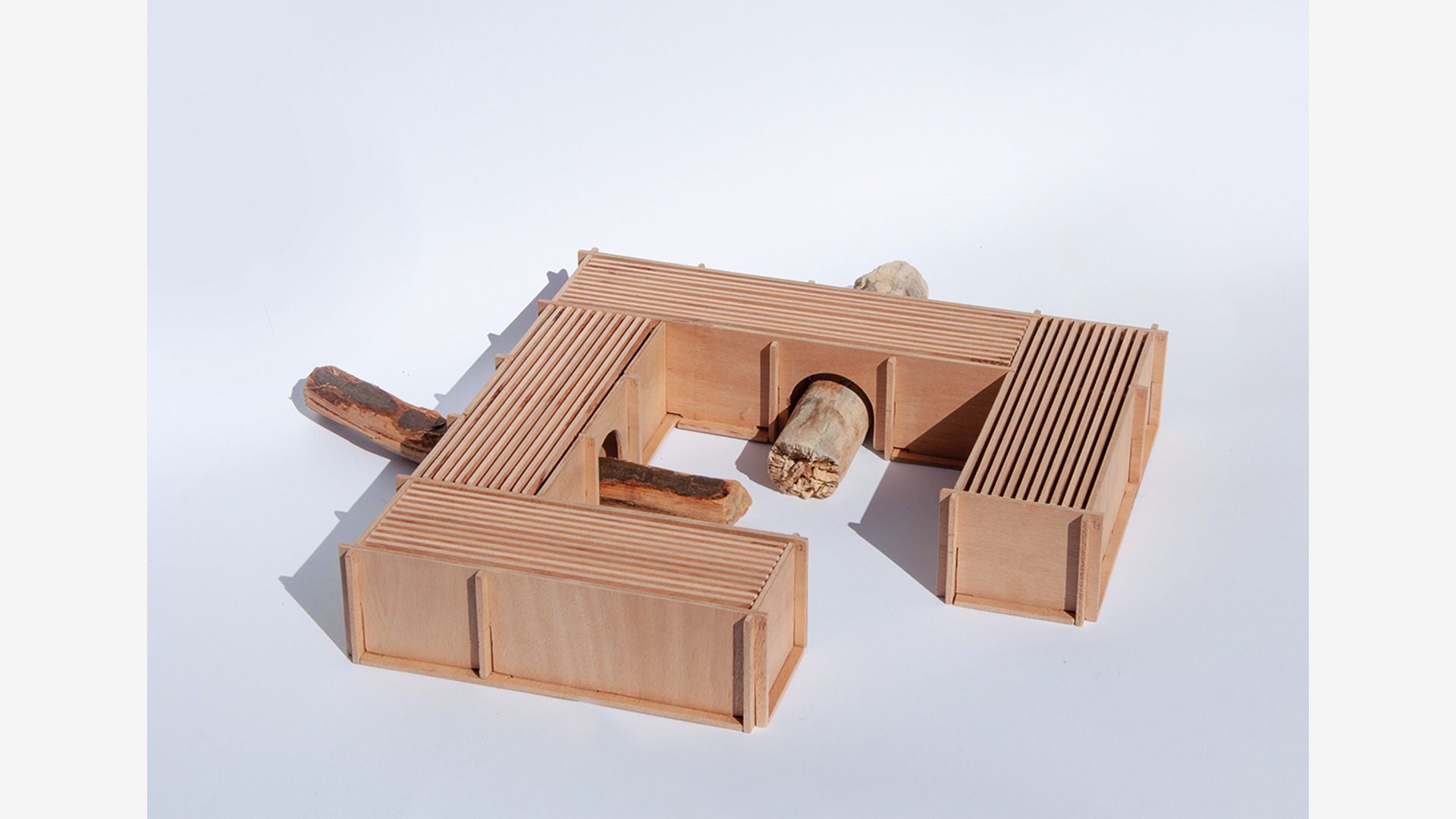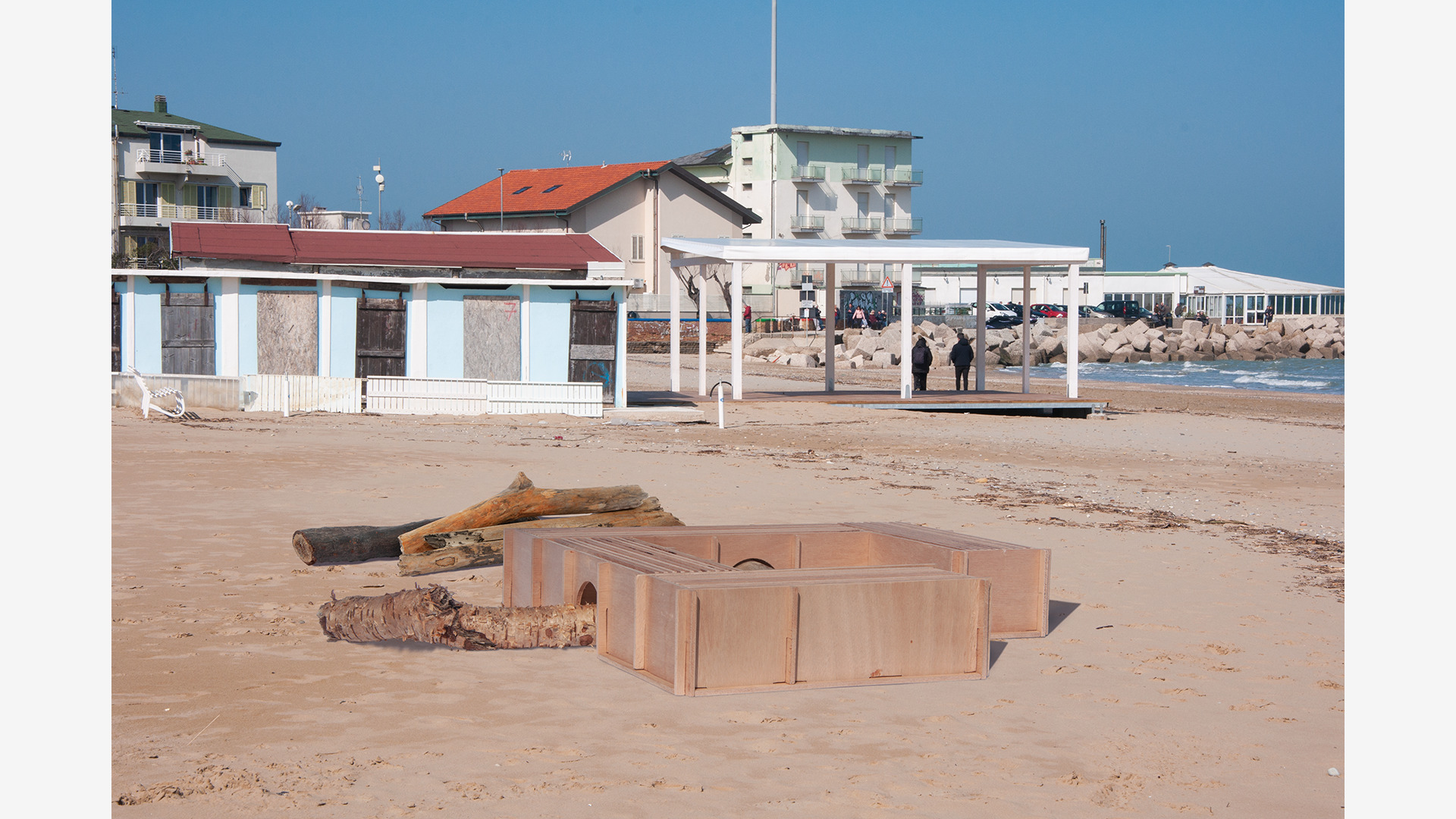 Complesso di arredi effimeri ideati per la spiaggia nella stagione invernale.