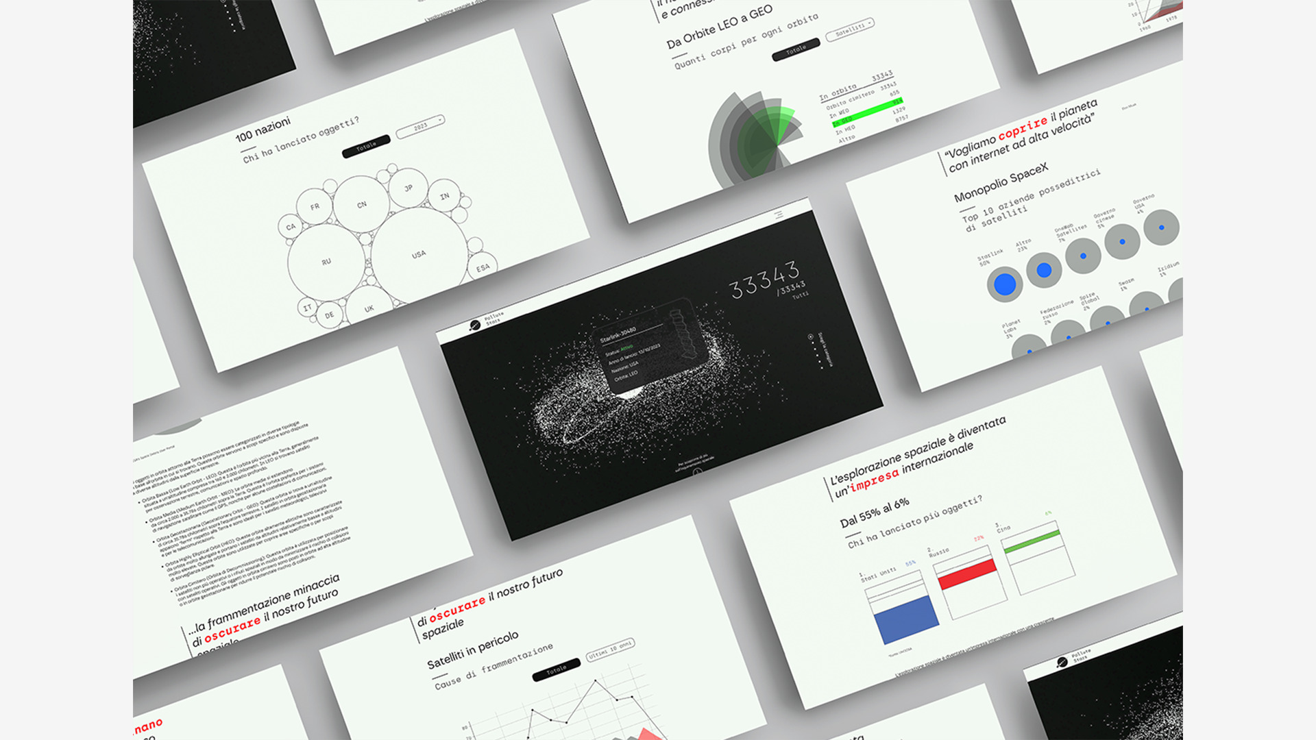 Sito web interattivo che mostra, attraverso infografiche e illustrazioni, il mondo degli oggetti lasciati nello spazio, testimonianze mute di esplorazioni passate e presenti.