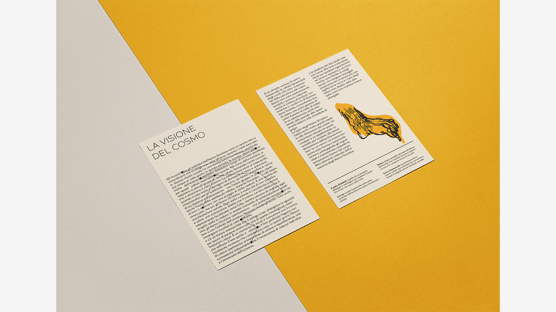 Progetto grafico che delinea un percorso immaginario riguardante l’evoluzione dell’essere umano, prendendo in considerazione possibili mutazioni fisiologiche strettamente legate allo sviluppo e all’ampliamento delle capacità sensoriali dell’uomo.