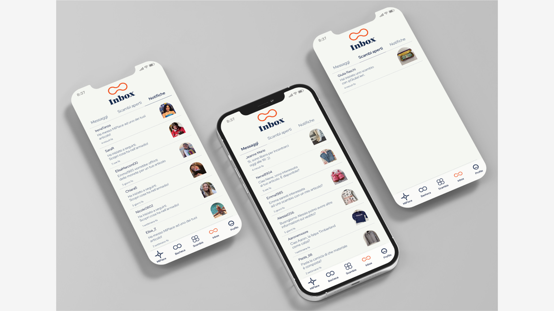 Piattaforma basata sul baratto; gli utenti possono caricare i vestiti che vogliono scambiare e cercare gli annunci di altri utenti per trovare i capi di abbigliamento che desiderano acquisire.
