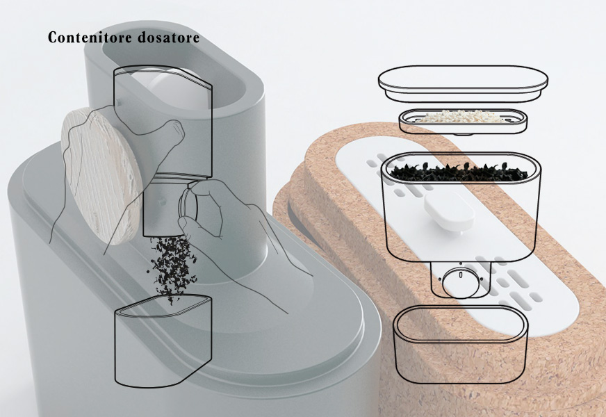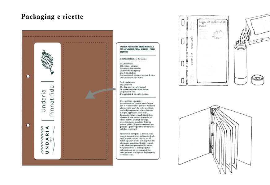 La necessità di individuare nuovi alimenti che possano soddisfare il fabbisogno di una popolazione mondiale in costante aumento, ha portato alla ricerca di varie soluzioni. Una di queste è rappresentata dalle ALGHE, le quali sono una formidabile fonte di nutrimento, considerate tra gli alimenti più benefici per il nostro corpo. L’algocoltura in alcune zone occidentali è in forte sviluppo, ma la produzione è quasi totalmente rivolta ai mercati asiatici (dove se ne fa uso da secoli): questo è un forte segnale che il problema sia a livello culturale. La maggior parte delle persone occidentali ha ancora poca conoscenza delle alghe e non saprebbe come usarle in cucina. È quindi necessario agire su due fasi: bisogna creare fascino, interesse, curiosità verso il mondo delle alghe e successivamente dare alle persone gli strumenti per imparare a usarle nel proprio ambito domestico. Attraverso la collaborazione di coltivatori, gastronomi e designers, “Undaria” intende dar vita ad un brand che permetta di riscoprire le alghe come elementi preziosi di cui ci si può nutrire e che possono essere prodotte e coltivate. Il sistema, proposto per un mercato domestico, consiste in un contenitore/dosatore progettato nella forma e nei materiali per conservare al meglio l’integrità delle alghe disidratate e in una serie di espositori legati a una selezione di ricette che ne accompagnano il consumo.